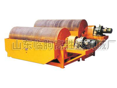 該類設備利用永磁磁系所產(chǎn)生的磁力,將礦漿中的磁性礦物吸引到圓筒表面上來,并隨著圓筒一起旋轉(zhuǎn),待脫離磁場作用后在重力、(刮板)作用下,排出機外,而非磁性物料從尾礦口排除,完成分選作用。